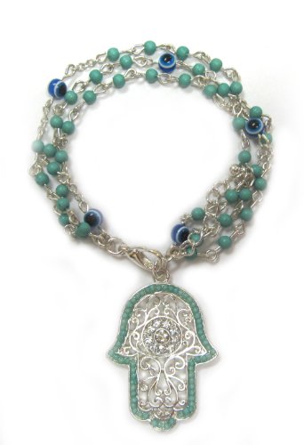 Turquoise Evil Eye, Add this stunning bracelet to your collection to wear casually or formally. The hypoallergenic element ensures that anyone can enjoy this item. The hamsa is a palm-shaped amulet popular throughout the Middle East and North Africa, and commonly used in jewellery and wall hangings. Depicting the open right hand, an image recognized and used as a sign of protection in many societies throughout history, the hamsa provides superstitious defense against the evil eye.
