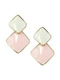 le Jane , Elegant white and pink resin double squares gold stud earrings. 14K gold plated with size of 9/16'' _ 7/8''. Nice to wear in all different occasions. Elegant and youthful. ...