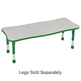 SPR , Rectangular tabletop features brightly colored trim and sturdy construction. Ideal for any early childhood environment. Laminate top is easy to wipe down for quick sanitation. Plastic edging T-molded with a barbed insert prevents separation from the laminate. Scalloped sides of the table make it easy to determine how many chairs will fit. Sturdy steel legs are sold separately and fitted with round plastic boots to protect floor surfaces. A complete table adjusts in height from 14-1/2'' to 24-1/2'' in 1'' increments to accommodate all ages. Tabletop and legs are sold separately. (Read More)