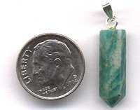 abeadstore , Gemstone pendant is cut in a six sided, single terminated, faceted point that measures about 6x20mm. Point pendant is made from Russian Amazonite with a silver plated pin attached to the flat end. Pendant also comes with a snap bail. Pendants are sold individually.